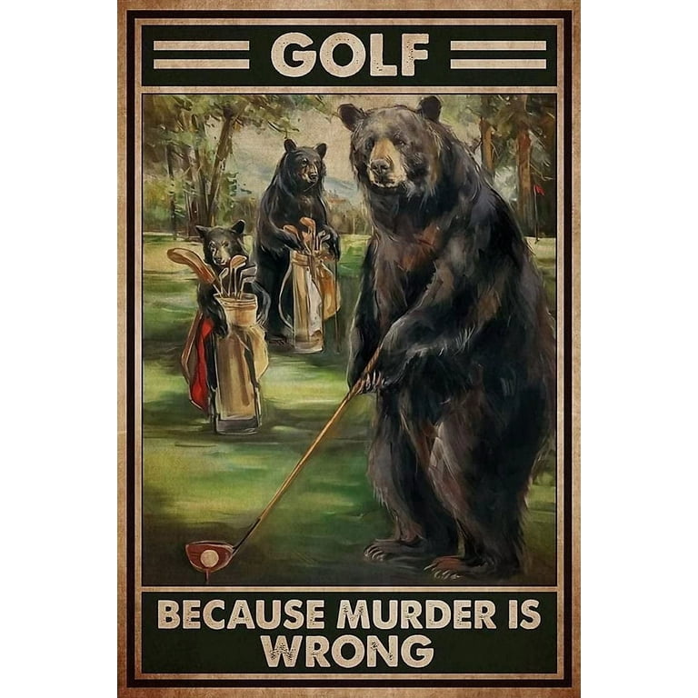 Funny Black Bear Golf Bathroom Quote Metal Tin Sign Wall Decor